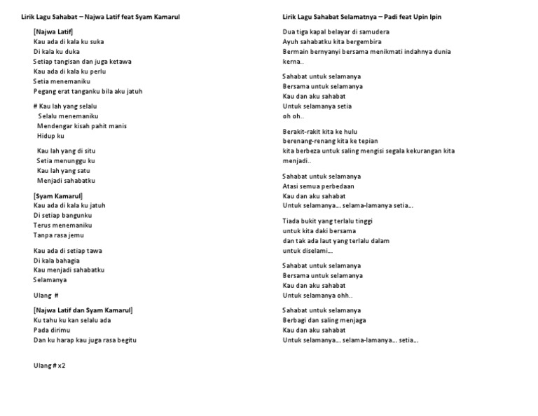 Lirik Lagu Sahabat Selamanya Padi Upin Ipin Pdf